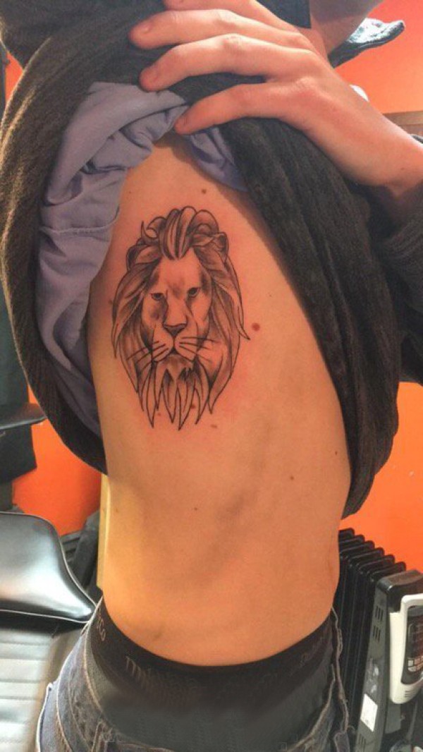 狮子王纹身 男生侧腰上黑色的狮子纹身图片