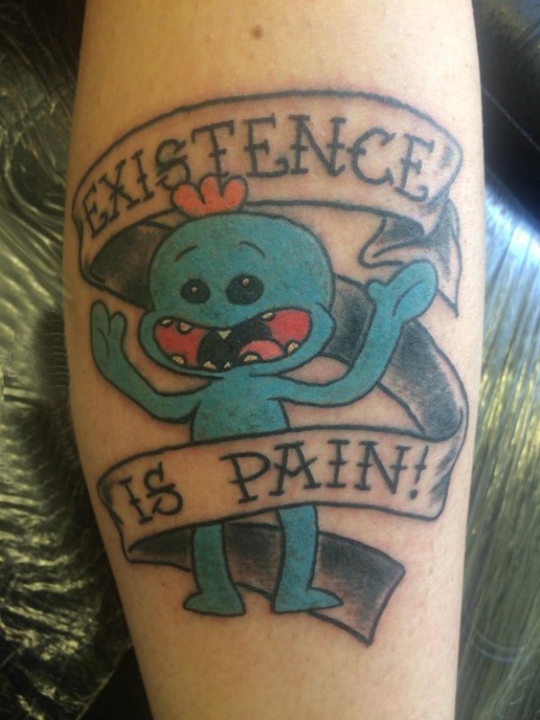 纹身卡通人物 男生小腿上英文和卡通人物纹身图片