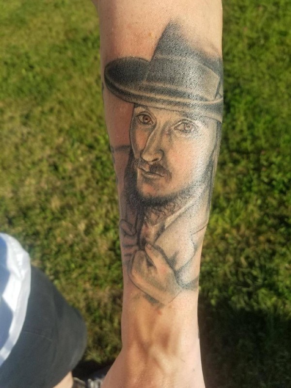 人物肖像纹身 男生手臂上黑色的人物肖像纹身图片