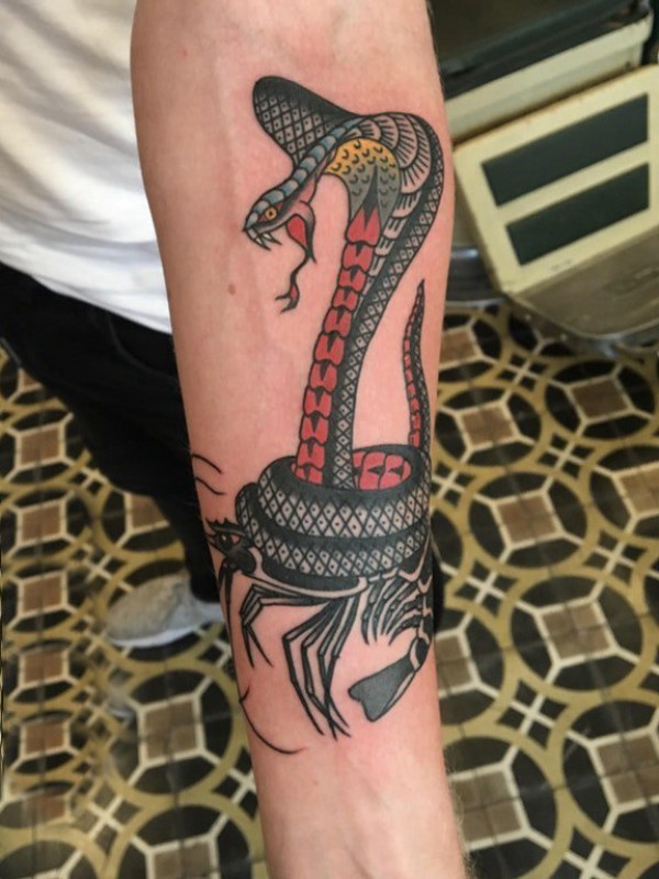 纹身眼镜蛇 男生手臂上彩色的蛇纹身图片