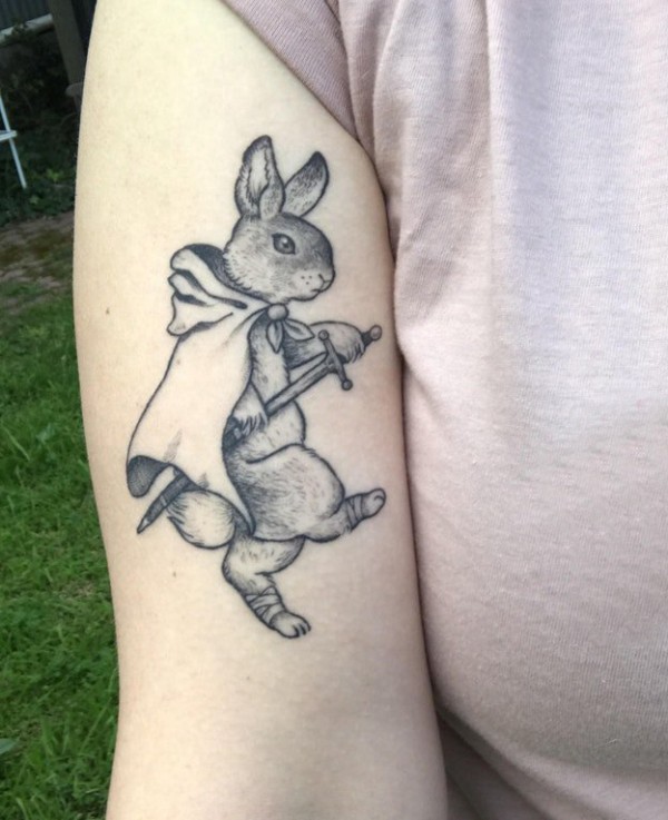 纹身兔 女生手臂上黑灰兔子纹身图片