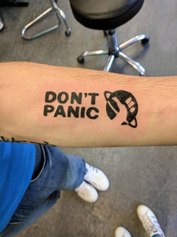 星球英文纹身 男生手臂上文艺星球英文纹身图片