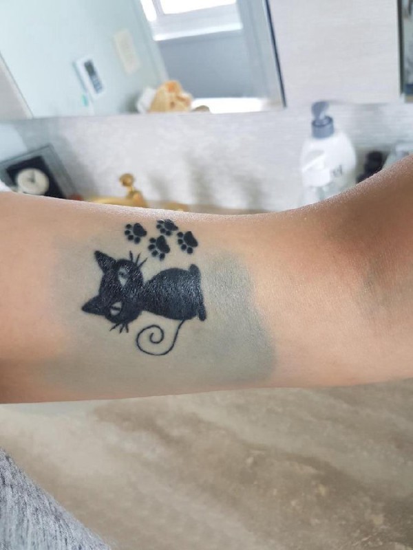 小清新猫咪纹身 女生手臂上黑色的猫咪纹身图片