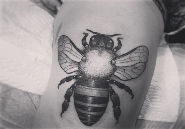 小蜜蜂纹身 男生大腿上黑色的蜜蜂纹身图片