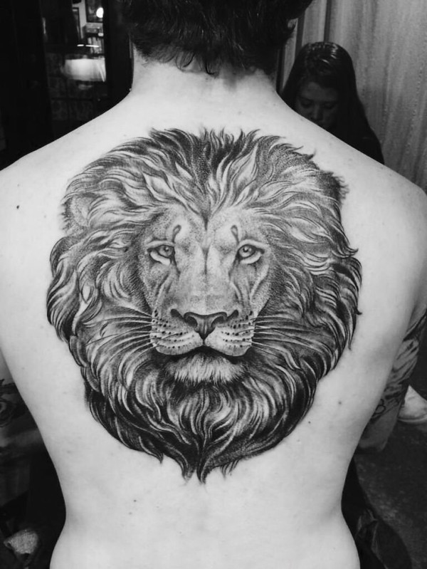 狮子头纹身 男生背部狮子头纹身霸气图片