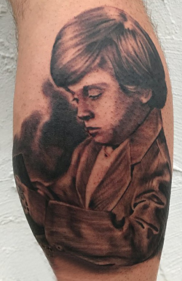 人物肖像纹身 男生小腿上人物肖像纹身图片