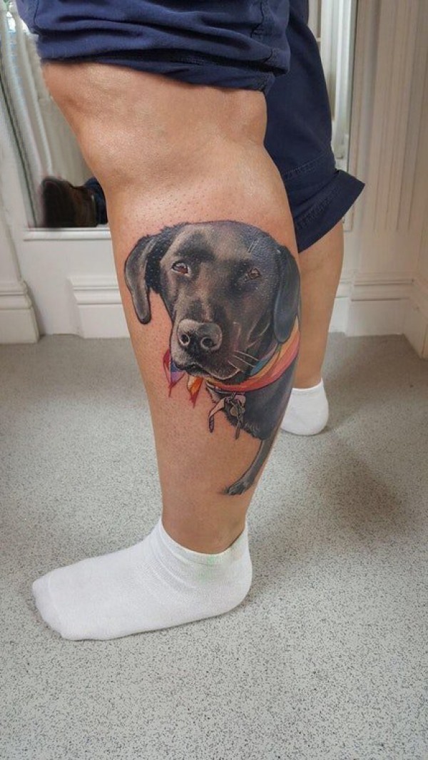 小狗纹身 男生小腿上小狗小动物纹身图片
