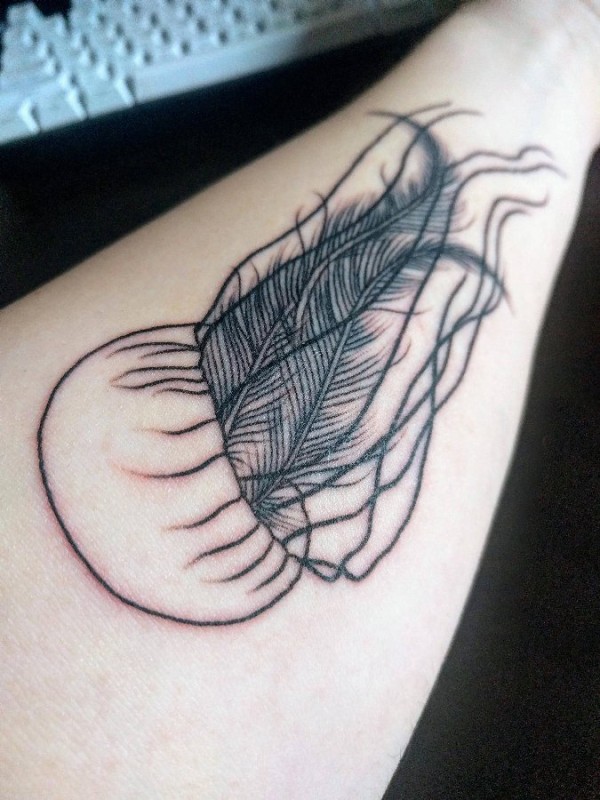 塔图纹身水母 男生手臂上黑色的水母纹身图片