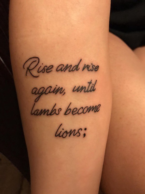 花体英文纹身 女生手臂上黑色的花体英文纹身图片