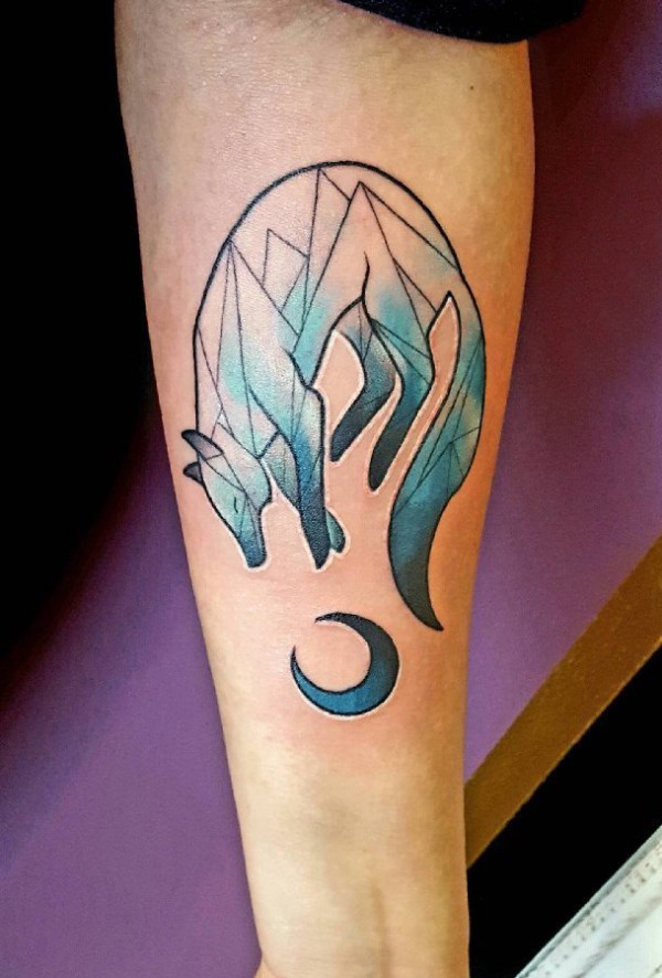 彩色狐狸纹身 男生手臂上彩色的狐狸纹身图片