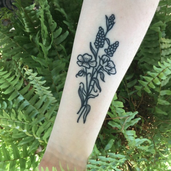紫罗兰花纹身 女生手臂上黑色的文艺花朵纹身图片