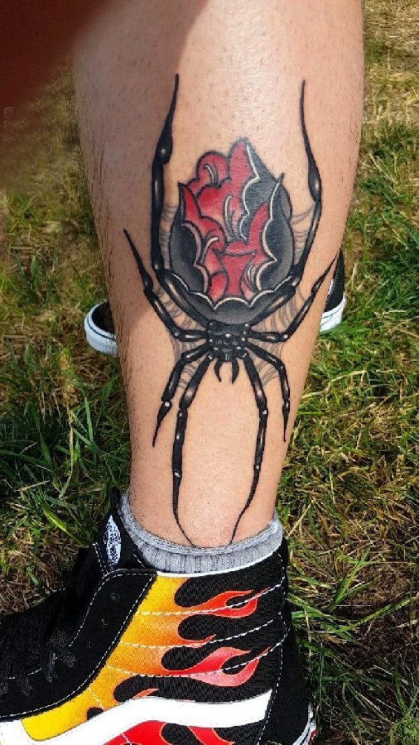 蜘蛛纹身 男生小腿上蜘蛛纹身图片