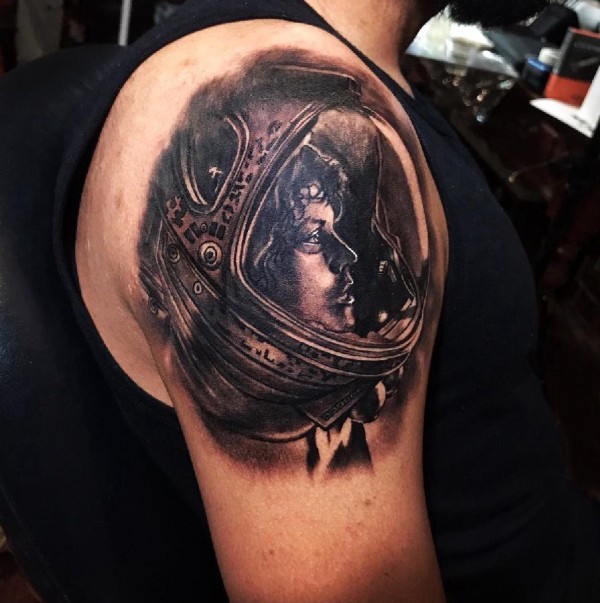 宇航员纹身 男生手臂上的宇航员纹身图片