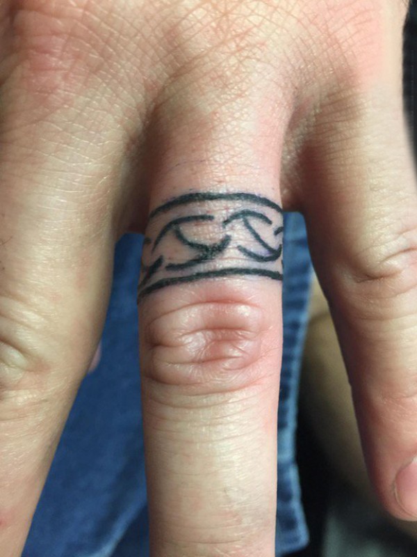手指纹身戒指 男生手指上黑色的戒指纹身图片
