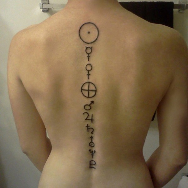 男生脊柱纹身 男生后背上黑色的符号纹身图片