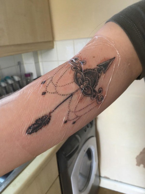 弓箭纹身图案 男生手臂上黑色的箭纹身图片