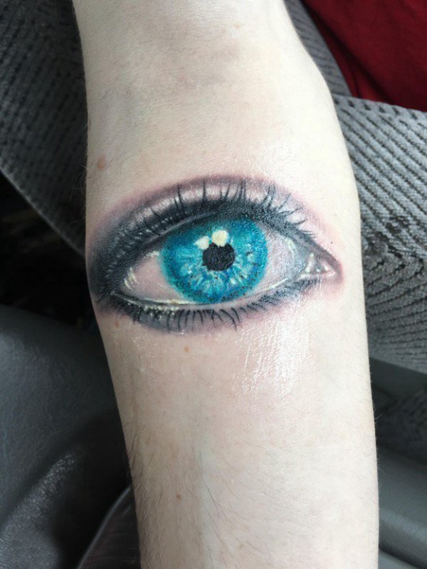 眼睛纹身 男生手臂上彩色的眼睛纹身图片