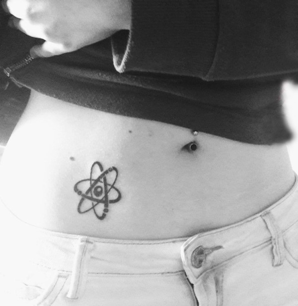 女生后腰纹身黑白灰风格抽象线条纹身图案