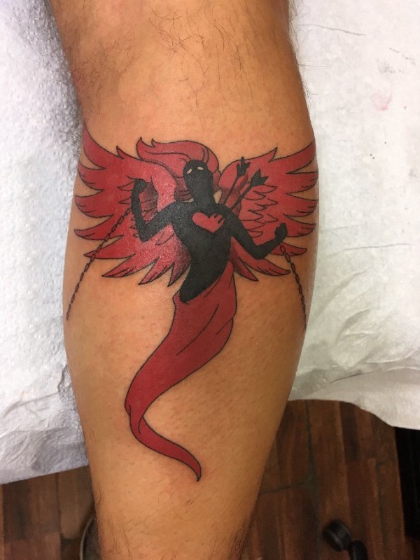 恶魔天使翅膀纹身 男生小腿上彩色的恶魔纹身图片
