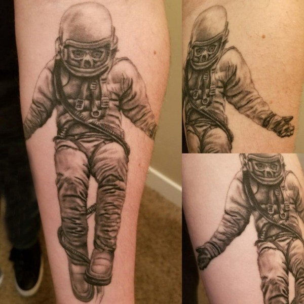 宇航员纹身图案 男生手臂上黑色的宇航员纹身图片