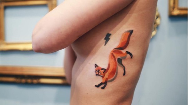 彩色狐狸纹身 女生侧腰上活泼的狐狸纹身图片