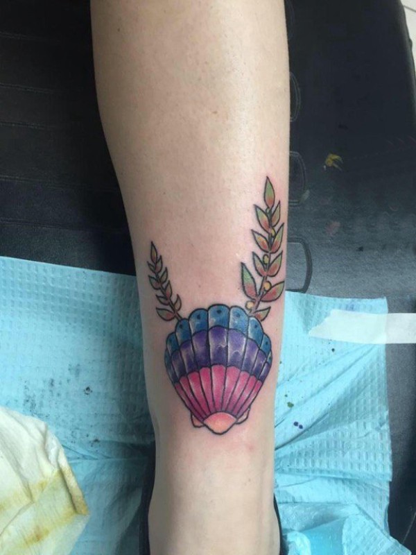贝壳图案纹身 女生手臂上彩色的贝壳纹身图片