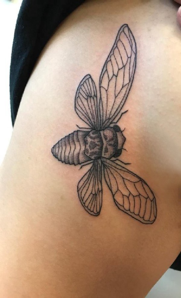 百乐动物纹身 女生侧腰上黑色的昆虫纹身图片