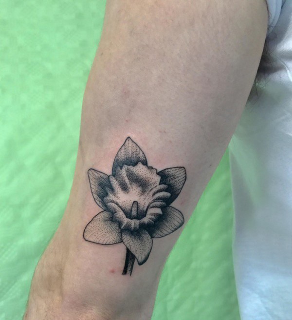 文艺花朵纹身 女生手臂上黑色的花朵纹身图片