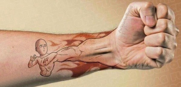 手臂纹身素材 男生手臂上彩色的卡通纹身图片