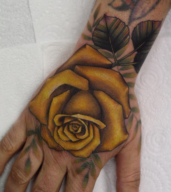 纹身玫瑰 男生手背上彩色的玫瑰纹身图片