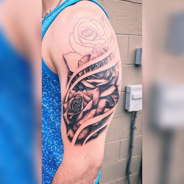 欧美玫瑰纹身 男生手臂上黑色纹身欧美玫瑰纹身图片
