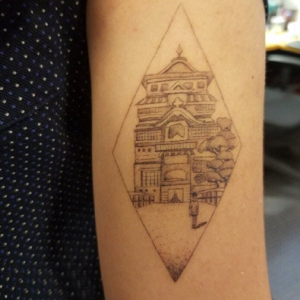 建筑物纹身 女生手臂上黑色的建筑物纹身图片