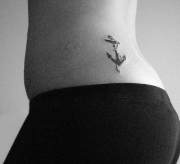 欧美船锚纹身 女生腰部黑色纹身欧美船锚纹身图片