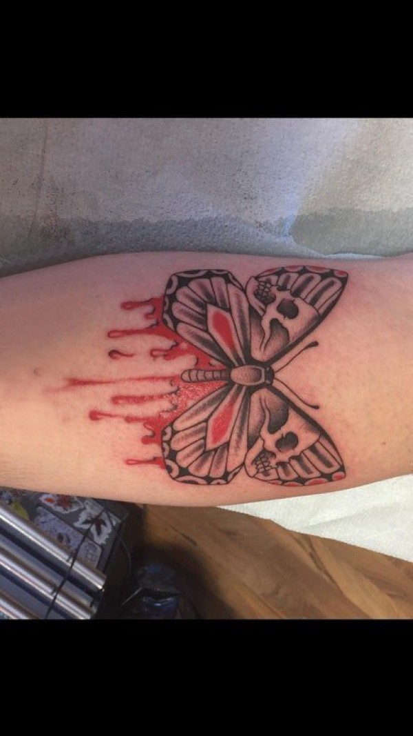 3d蝴蝶纹身 男生小腿上彩色的蝴蝶纹身图片