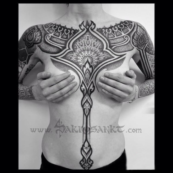 多款黑色线条素描几何元素创意经典霸气大面积纹身图案