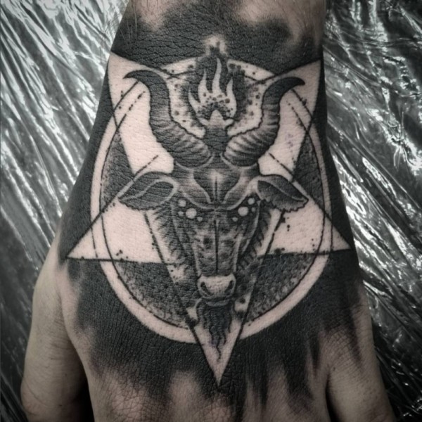多款黑灰素描点刺技巧经典撒旦教会霸气复古纹身图案