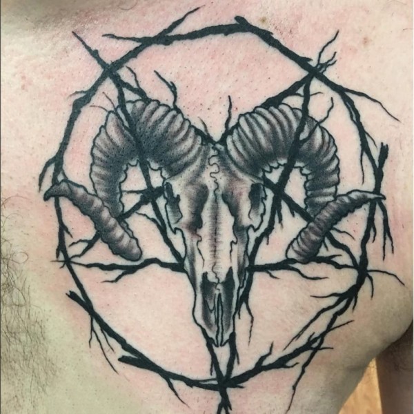 多款黑灰素描点刺技巧经典撒旦教会霸气复古纹身图案
