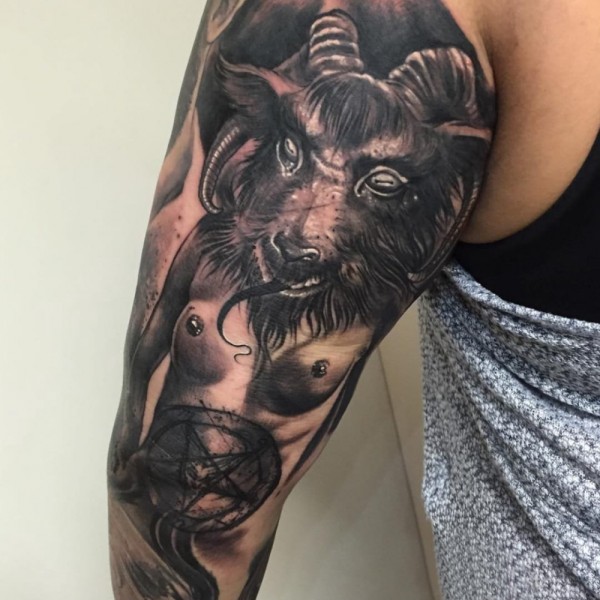 多款黑灰素描点刺技巧经典撒旦教会霸气复古纹身图案