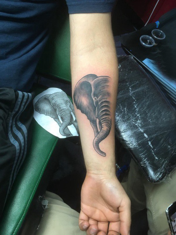 象纹身 男生手臂上黑色的大象纹身图片