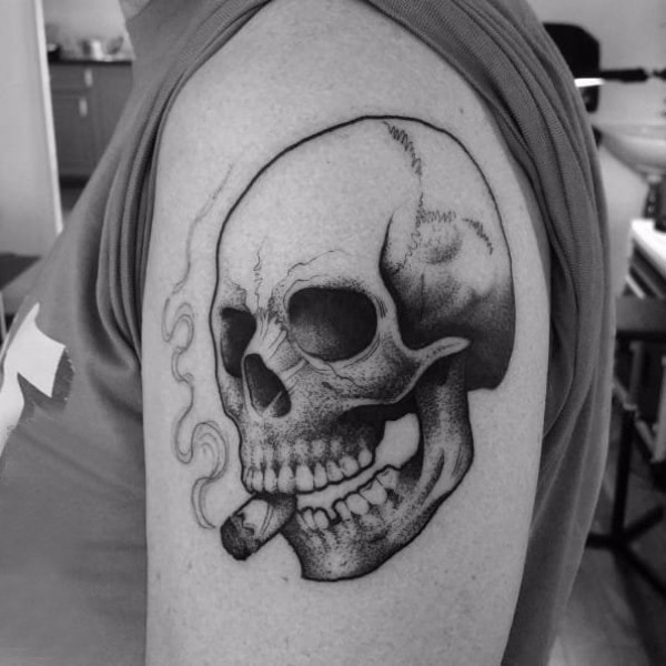 男人大臂黑白彼岸花骷髅_黑白纹身图案大全_纹身图吧