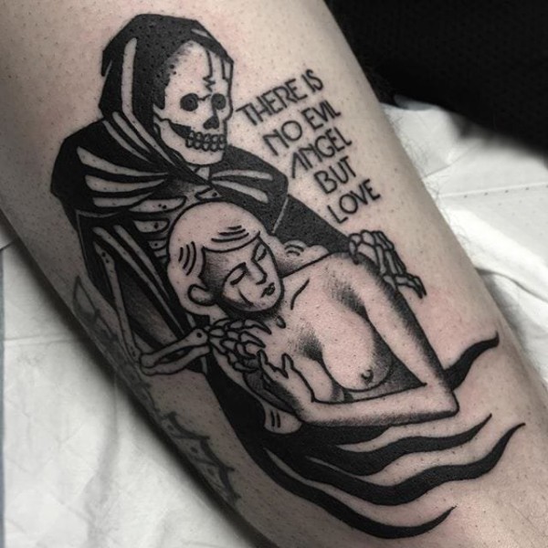 男人大臂黑白彼岸花骷髅_黑白纹身图案大全_纹身图吧