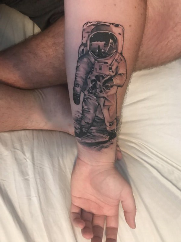 宇航员纹身图案 男生手臂上经典宇航员纹身图片
