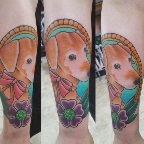 小狗纹身图片 女生手臂上彩绘纹身小狗纹身图片