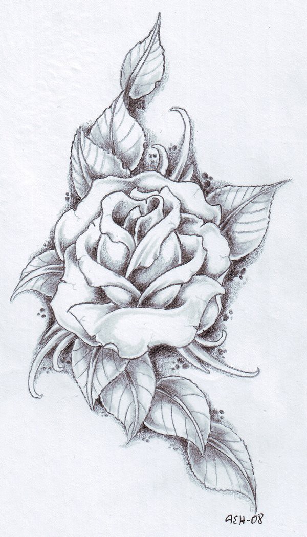 多款黑灰素描点刺技巧文艺唯美花朵霸气骷髅纹身手稿