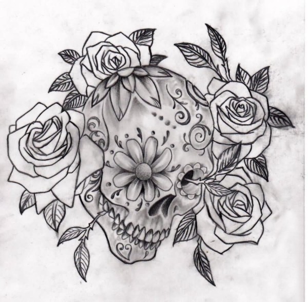 多款黑灰素描点刺技巧文艺唯美花朵霸气骷髅纹身手稿