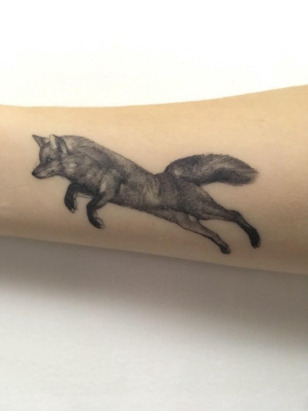 九尾狐狸纹身 女生手臂上黑色的狐狸纹身图片