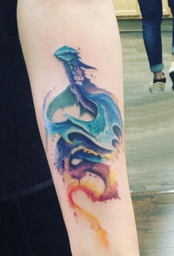 飞龙纹身图 男生手臂上彩色的龙纹身图片