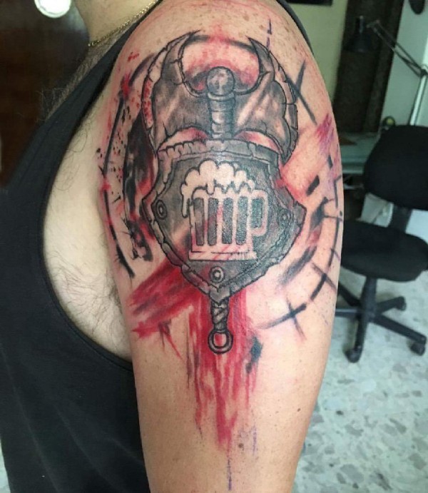 纹身盾牌 男生大臂上坚硬的盾牌纹身图片