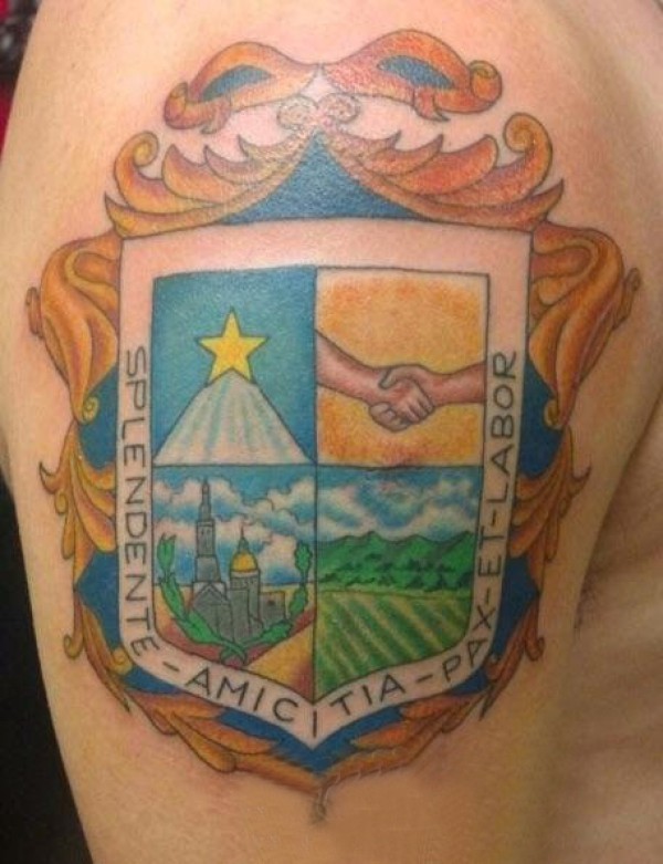 纹身盾牌 男生大臂上彩色的盾牌纹身图片