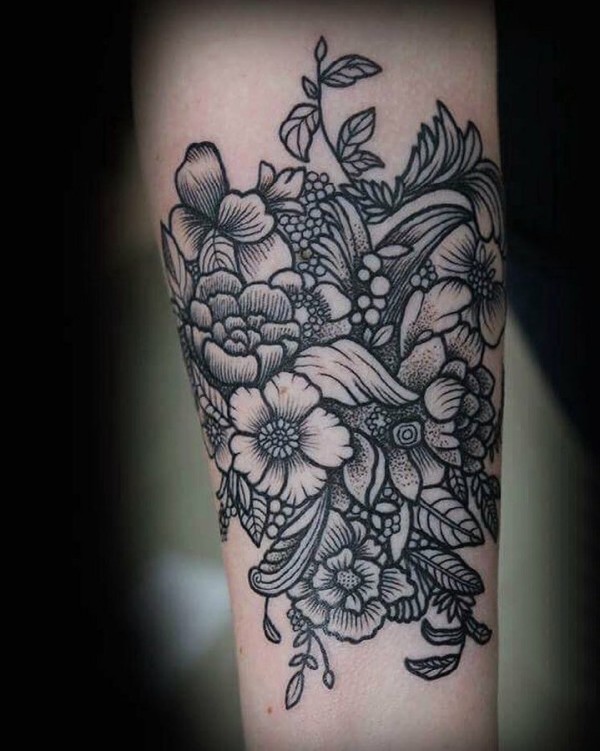 文艺花朵纹身 女生手臂上黑色纹身文艺花朵纹身图片